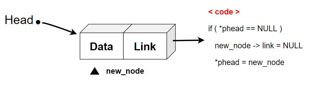 : head가 NULL 이라면 현재 삽입하려는 노드가 첫번째 노드가 된다. 따라서 head 값만 변경하면 된다.