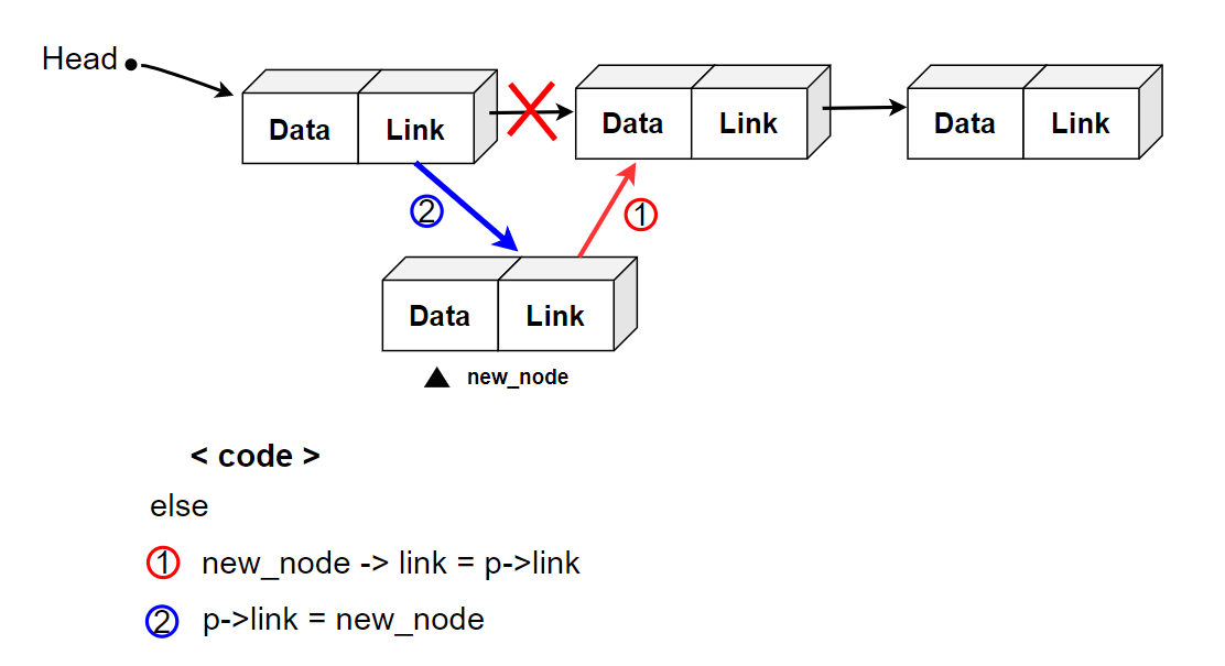 - p : 삽입될 위치의 선행노드를 가르키는 포인터 ( p 노드 다음에 삽입된다 . )