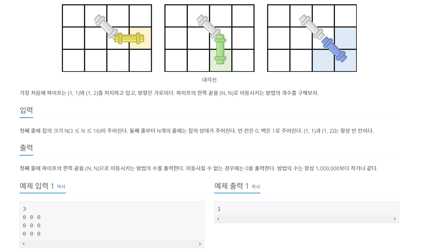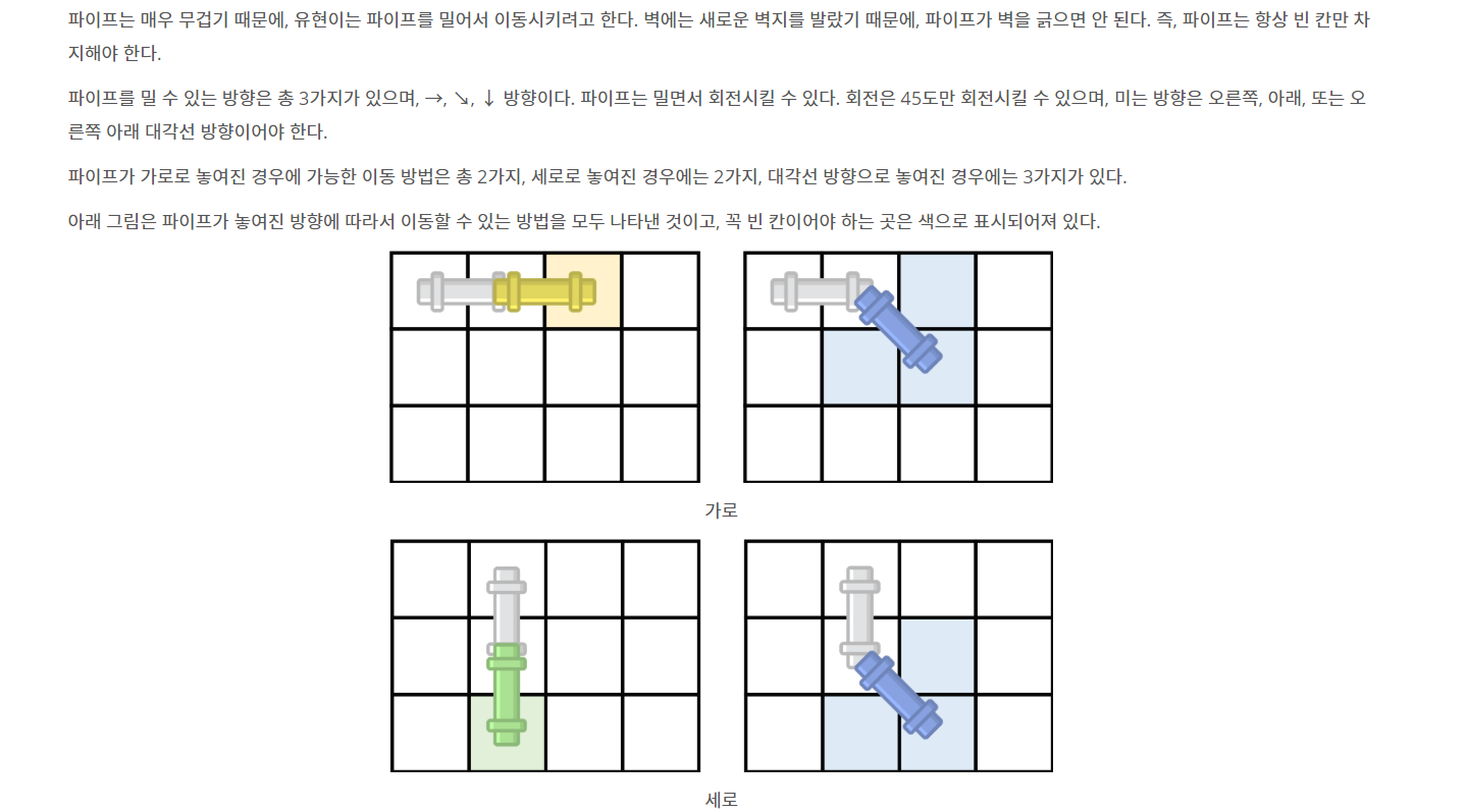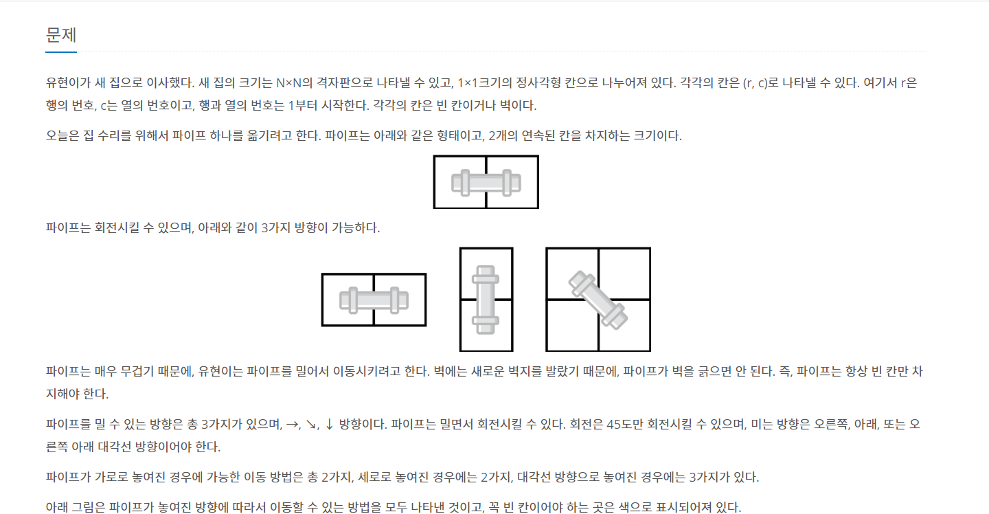 이번에는 BFS 로 푸는 파이프 옮기기에 대해서 설명해 드릴께요.
