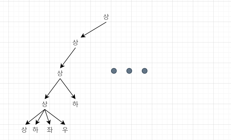 따라서 5번 동안 상,하,좌,우 이 4방향을 중복이 가능하게 나열을 해야합니다.